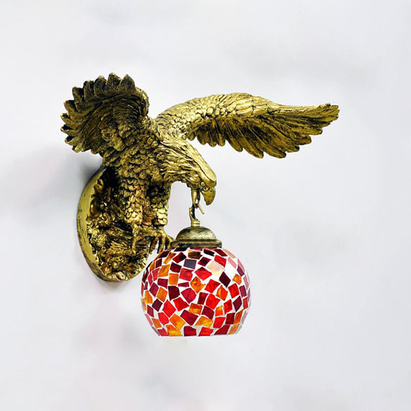 Globe Wall Mounted Mediterranean Sconce Light With White/Beige/Red Glass For Outdoor Use Red