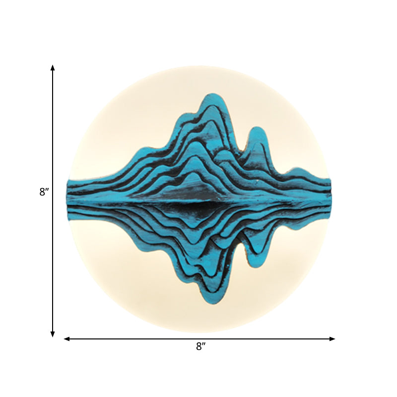 Gold/Blue Chinese Style Led Acrylic Wall-Mounted Lamp With Rounded Mountain Mural For Bedrooms Blue