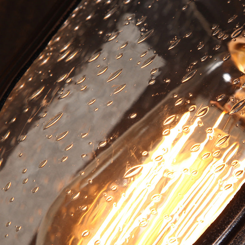 Applique murale extérieure industrielle à col de cygne - Applique noire à 1 lumière avec verre à bulles et bras incurvé
