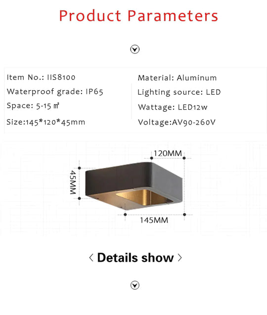 Led Outdoor Verlichting Ip65 Waterdichte Alumunim Wandlamp Tuin Villa Veranda Blaker Zwarte Kleur