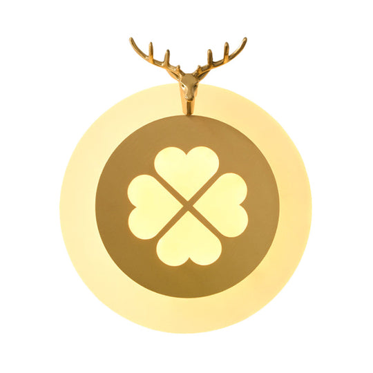 Brass/Black Metal Circle Sconce With Lucky Clover Pattern - Led Wall Light For Tradition Living Room