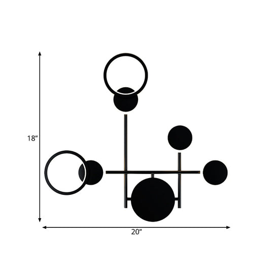 Applique murale contemporaine à DEL au design rond métallique - Noir, 2/3/4 lumières
