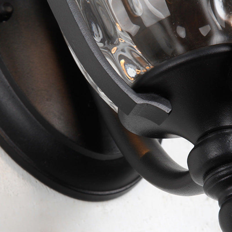 Applique Murale Industrielle en Verre avec Motif d'Urne à fossettes - Applique d'extérieur à Ampoule Unique en Noir, 3 Tailles Disponibles