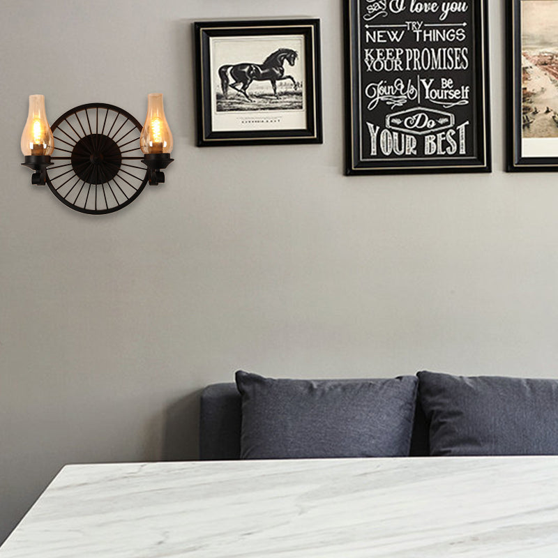 Applique murale d'extérieur rustique : abat-jour en verre transparent, design à 2 ampoules avec roue.
