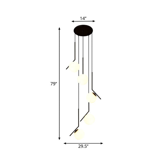 Auraolie - Lustre moderne à plusieurs lumières en forme de globe noir, luminaire suspendu simple en verre pour escaliers