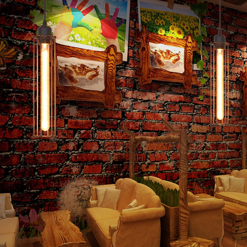 Iron Tube Pendant Ceiling Light - 1-Light Industrial Down Lighting Black Restaurant Hanging