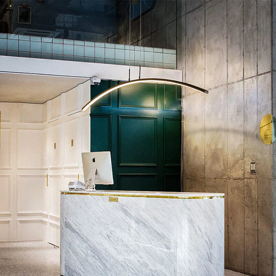 Arc Shape Led Hanging Pendant Lights Modern For Dining Room Black Color / Length 1200Mm Dimmable Rc