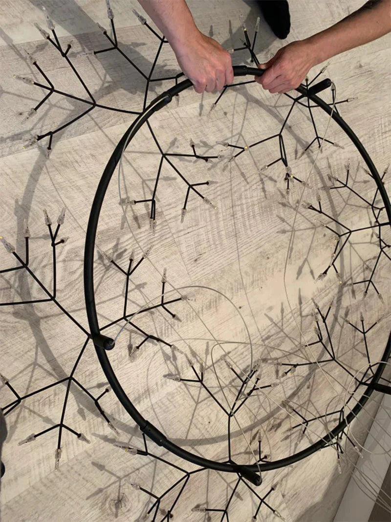 Disponible en deux tailles, la suspension offre des options adaptées à vos besoins spécifiques. Le modèle de diamètre 60 cm dispose de 54 ampoules LED, tandis que le modèle de diamètre 80 cm en propose 108. Quelle que soit la taille que vous choisissez, préparez-vous à être enchanté par la lueur enchanteresse qui remplit votre espace.