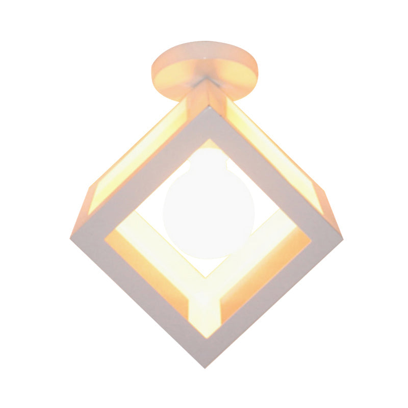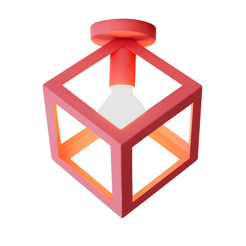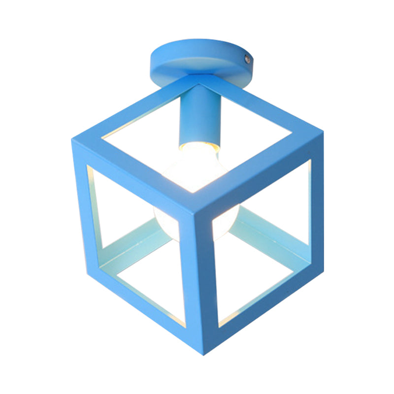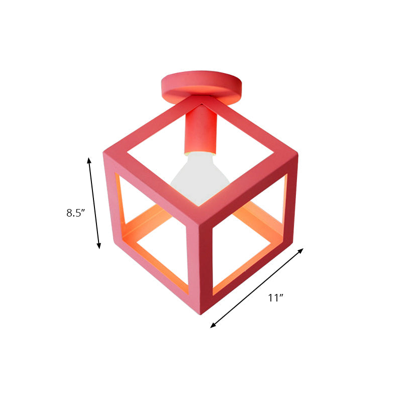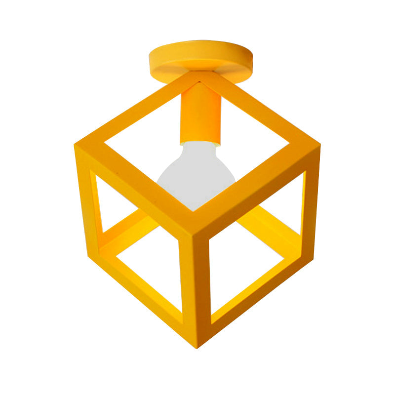 Modern 1-Light Square Ceiling Mounted Light With Wire Guard - Loft Style Semi-Flush Lighting For