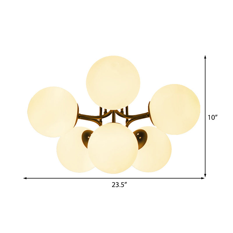 Traditional Black Semi Flush Ceiling Light Fixture With Globe White Glass Shade - 3/6 Lights For