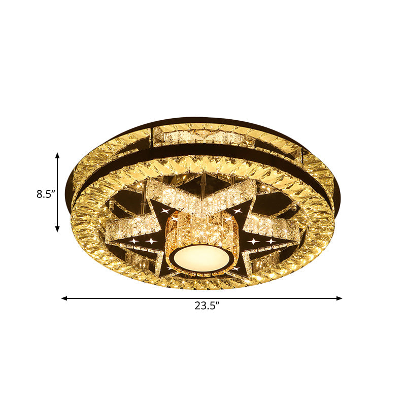 Modern Semi Mount Led Ceiling Light With Crystal Accents - Clover/Star Bedroom Lighting In Chrome