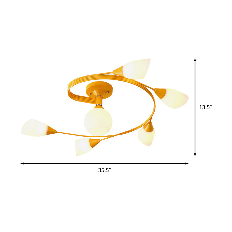 Curly Semi Flush Mount Ceiling Lamp With Nordic Iron & White Glass Shade - 4/6 Head Options In Grey