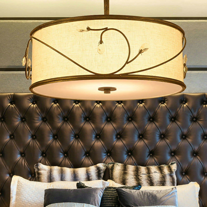 Plafonnier semi-monté en tissu à tambour classique - 5 lumières - Lin - 16"/19,5" de large