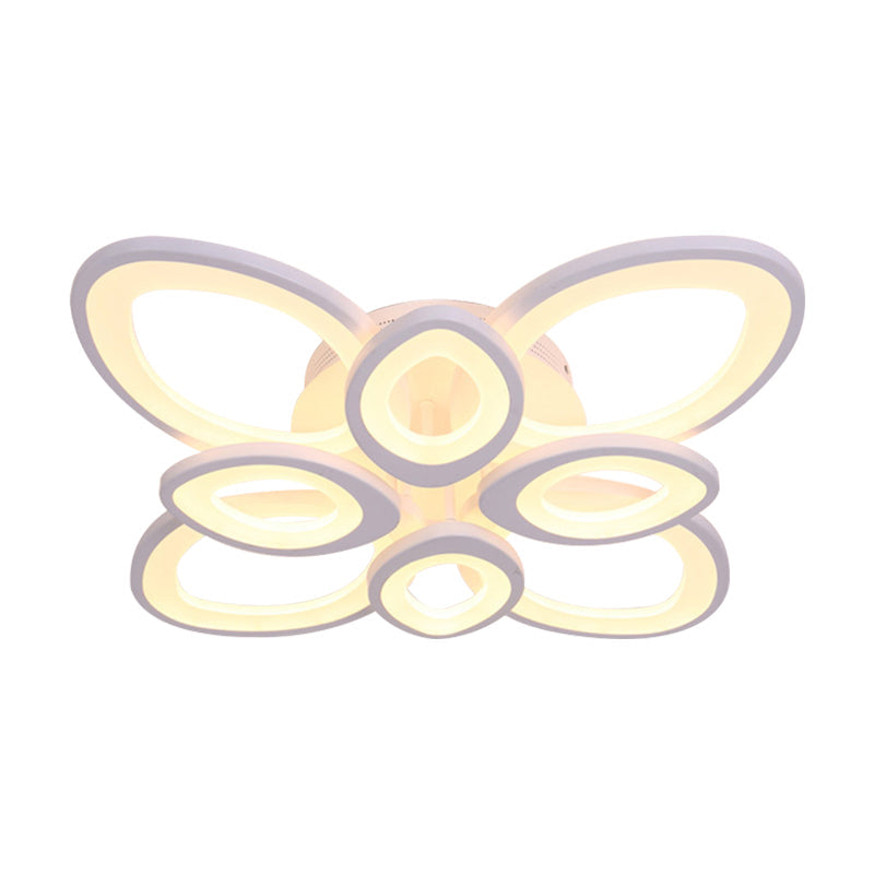 Ce produit est un plafonnier LED moderne avec un abat-jour en acrylique. Il est disponible en lumière blanche, chaude ou naturelle. Il présente un design de feuille blanche et est disponible en options de 4, 5 ou 8 lumières. La largeur du luminaire est de 23", 26", 27,5" ou 29,5" et la hauteur est de 5,5". La tension est de 110V-120V ou 220V-240V.