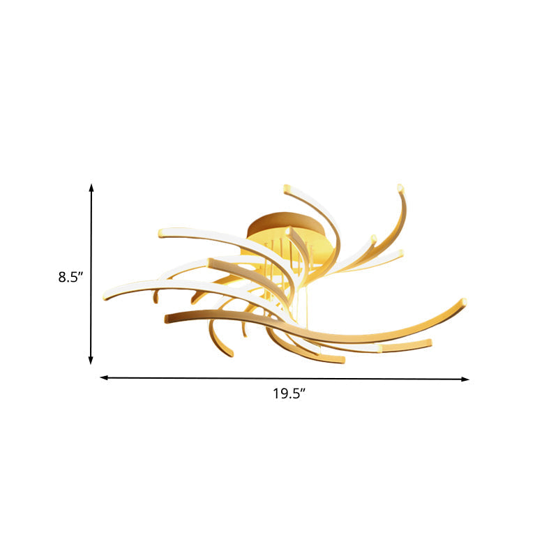 Plafonnier LED incurvé contemporain en blanc pour salons modernes