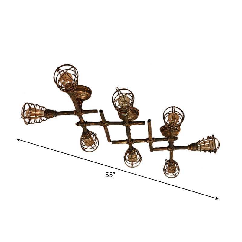 Piping Industrial Antiqued Bronze Metal Semi Flush Mount Ceiling Light With Cage 8 /