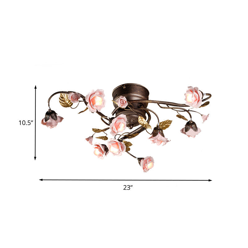 Rustic Metal Led Semi-Mount Ceiling Light With Rose Design - 9/12/20 Dark Brown Heads 9 /