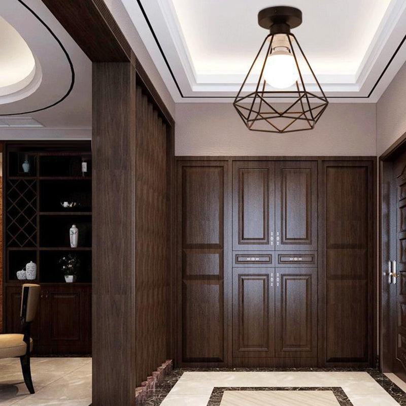 Industrial Cage Metal Ceiling Light In Black - Single-Bulb Semi Flush Fixture Ideal For Corridor /
