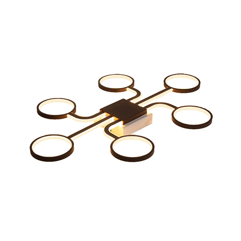 Sputnik Nordic Iron Ceiling Flush-Mount Light With Ring Shade - 4/6/8 Head Options Black 6 / Warm