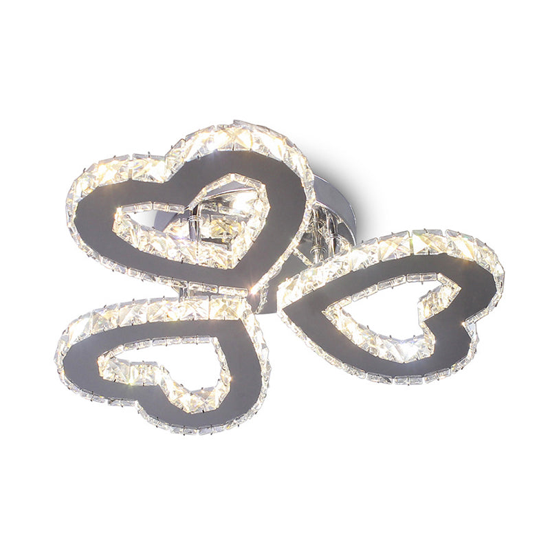 Plafonnier LED minimaliste en cristal pour chambre à coucher - Semi-encastré en forme de cœur, finition en acier inoxydable