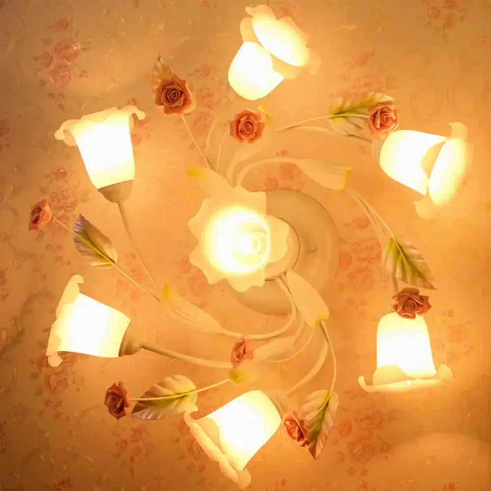 Plafonnier de salon American Garden Swirl - Lampe blanche à 4/7 têtes en métal avec abat-jour en verre dépoli