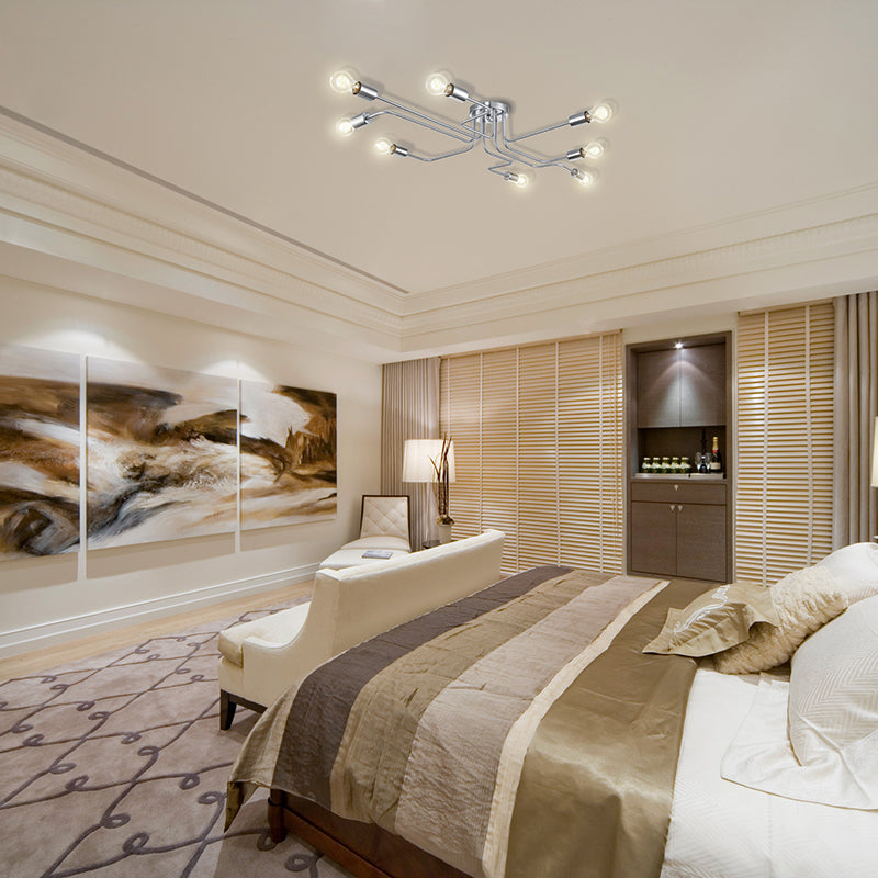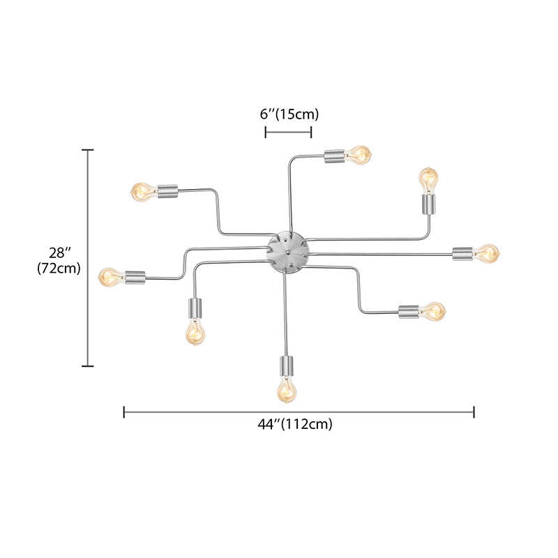 Il s'agit d'un plafonnier vintage exposé dans le style d'un design Spoutnik. Il est disponible en laiton antique ou noir et est en métal. Il y a 4 ou 6 ampoules, qui ne sont pas incluses, et le luminaire est monté en semi-encastré. La largeur de la verrière est de 5 pouces. La tension est de 110-120 V ou de 220-240 V. Le culot de l'ampoule est E26/E27. Le type d'éclairage peut être LED, incandescent ou fluorescent.
