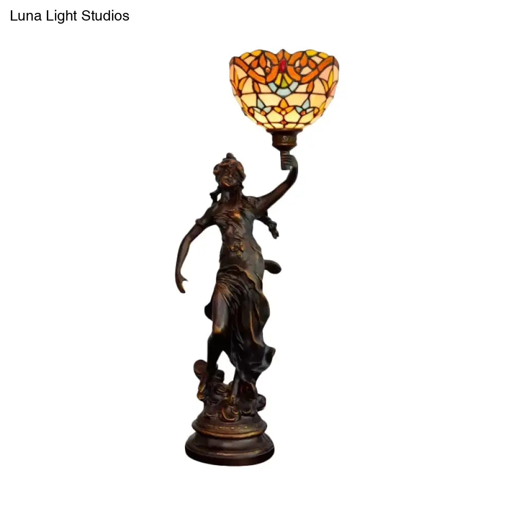 Ryleigh - Lampe de table Angel Girl de style Tiffany : une ampoule bleue et blanche/beige