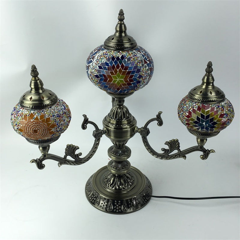 Ce produit est une lampe de chevet ovale Bohemia avec 4 ampoules. Il est fait de vitrail et est disponible en rouge/jaune/orange. C'est un appareil d'éclairage de table de nuit pour les chambres.