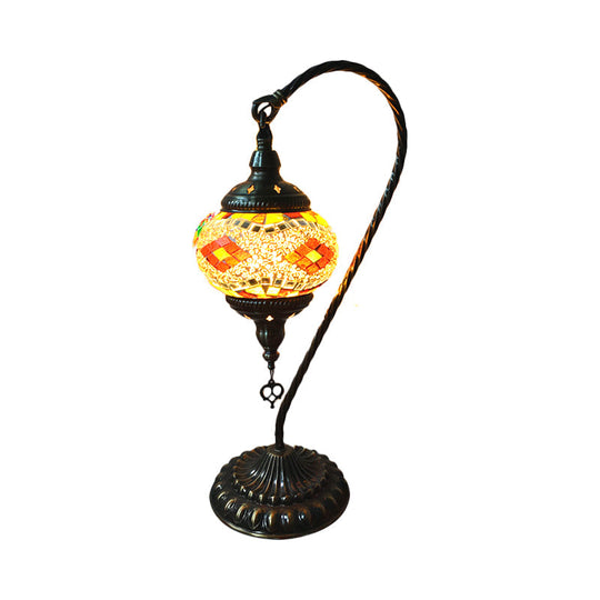 Curved Arm Retro Stained Glass Nightstand Lamp - White/Yellow/Orange Orange