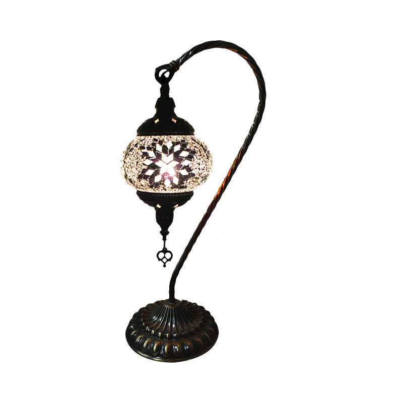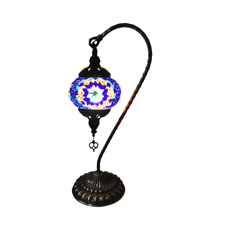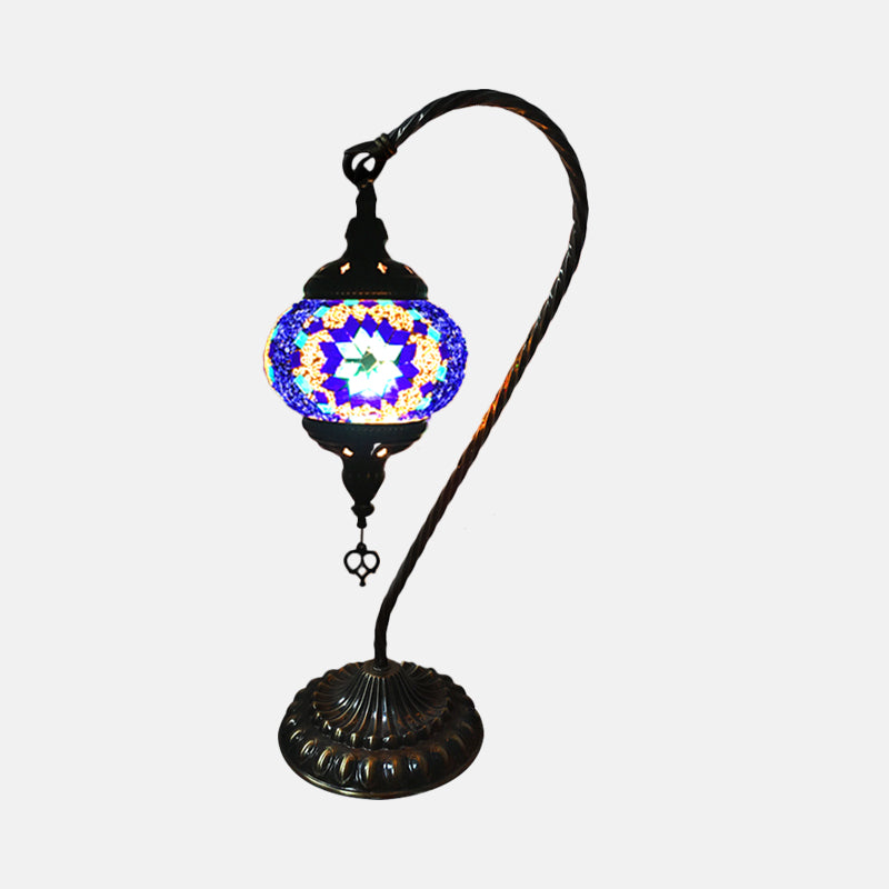 Curved Arm Retro Stained Glass Nightstand Lamp - White/Yellow/Orange Blue
