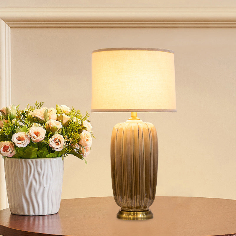 Lampe de table de chevet cylindrique blanche contemporaine, lampe de table à ampoule unique pour le salon