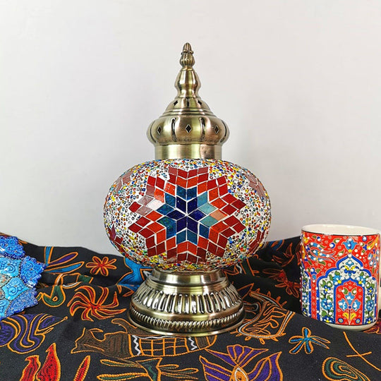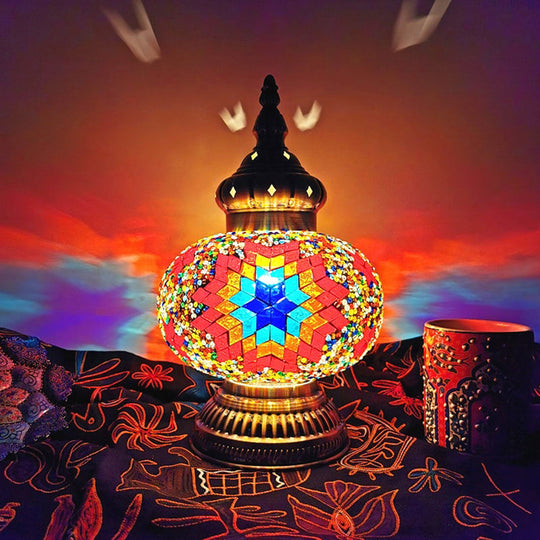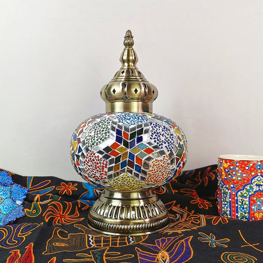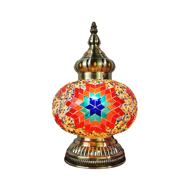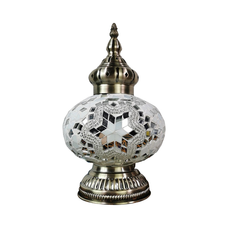 Handcrafted Glass Oval Night Table Lamp - Decorative 1 Bulb Nightstand Light In White/Yellow/Blue