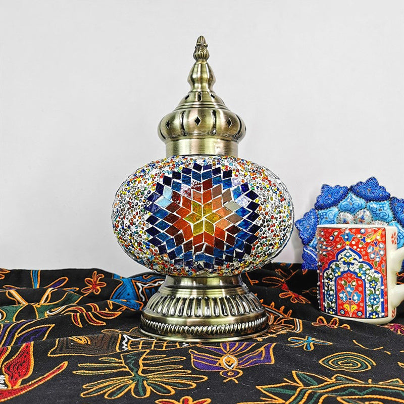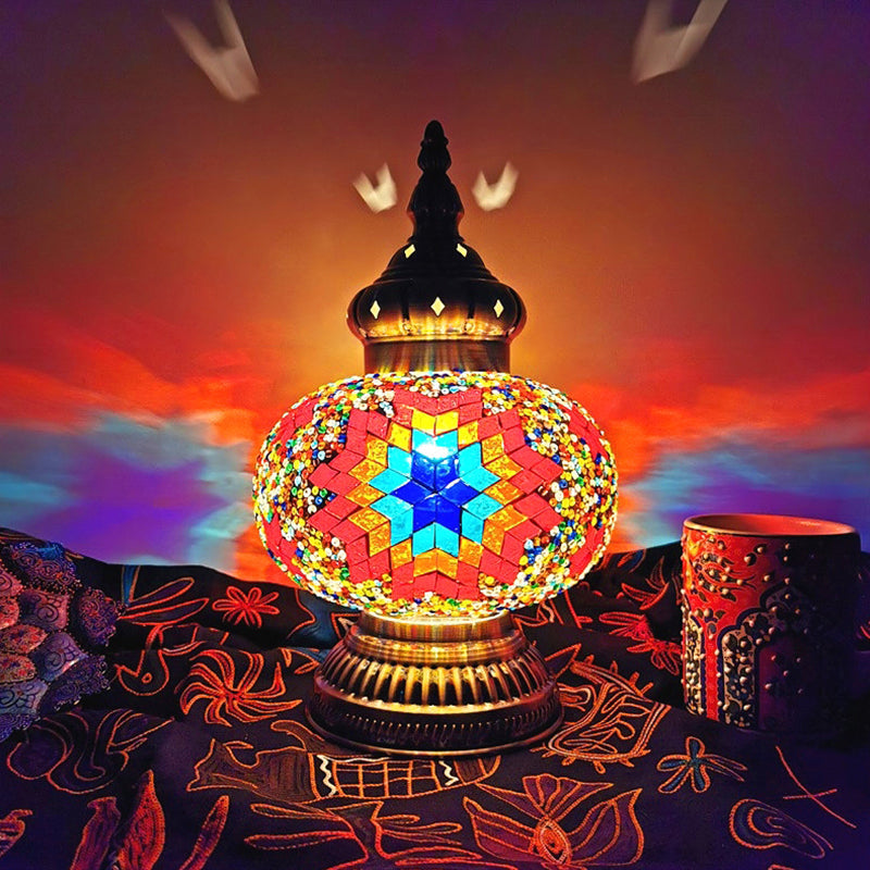 Lampe de table de nuit ovale en verre fabriquée à la main - Lampe de chevet décorative à 1 ampoule en blanc/jaune/bleu