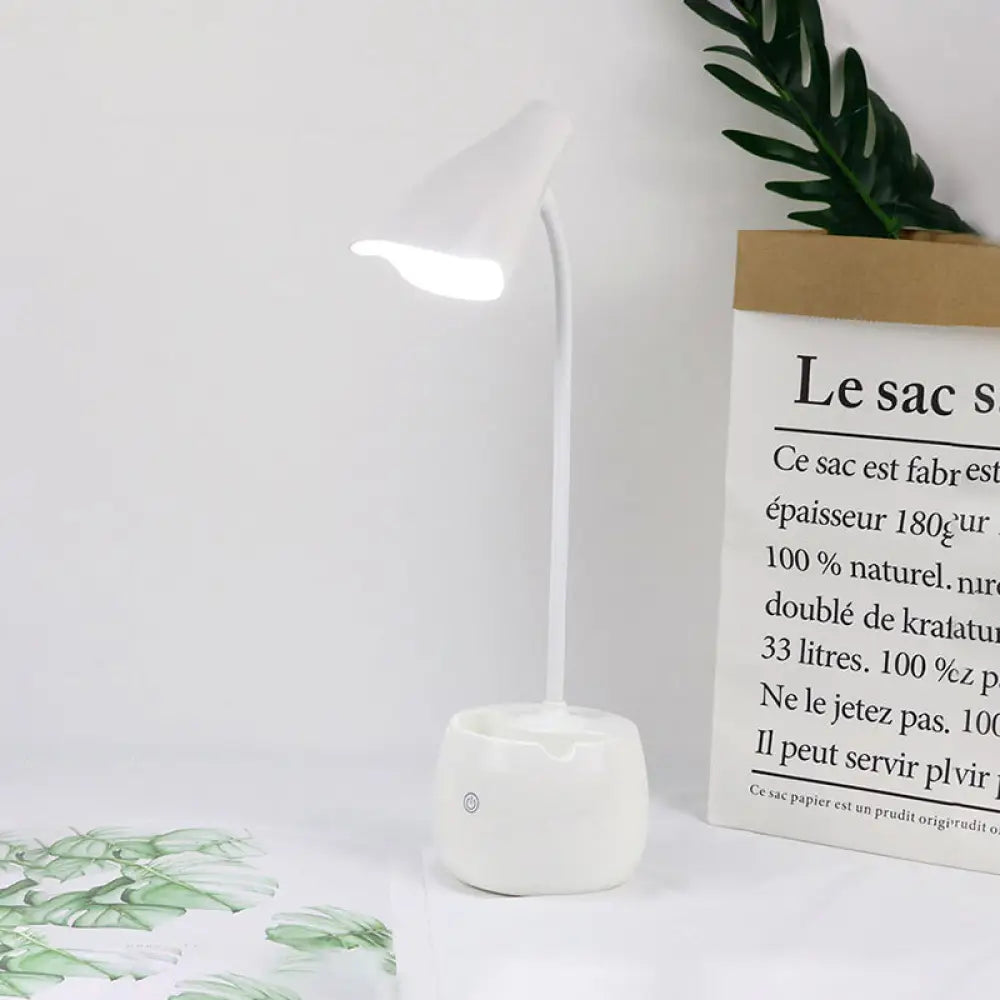 Lampe de bureau LED à col de cygne flexible avec porte-stylo en bleu/rose/blanc/jaune, chargement USB, soin des yeux pour la lecture