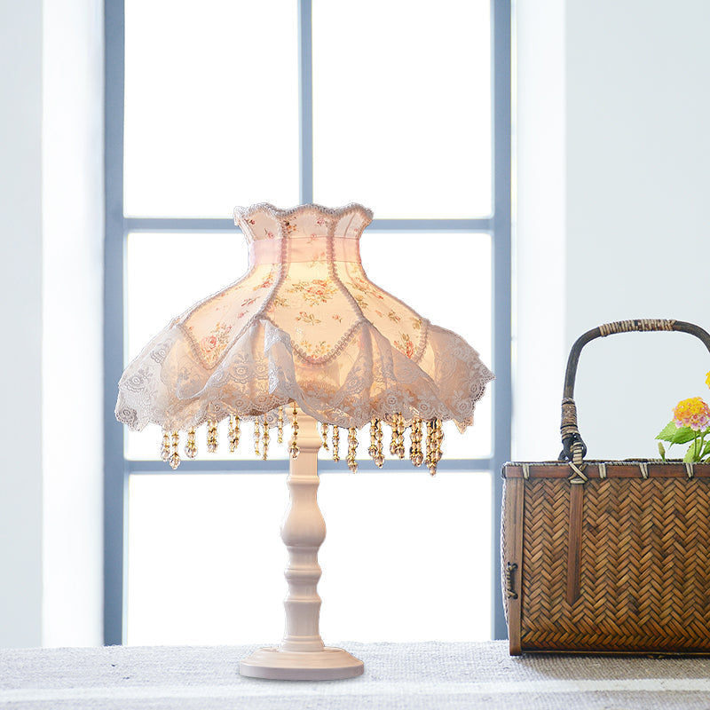 European White Nightstand Light With Flower/Lace Fabric And Draping Elegant Living Room Lighting