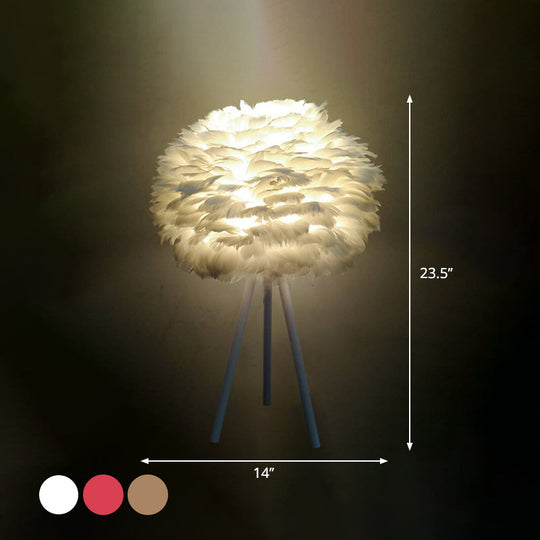 Feather Night Light Nordic Table Lamp - 1-Light White/Red/Pink With 3-Leg Stand Black/White Black /