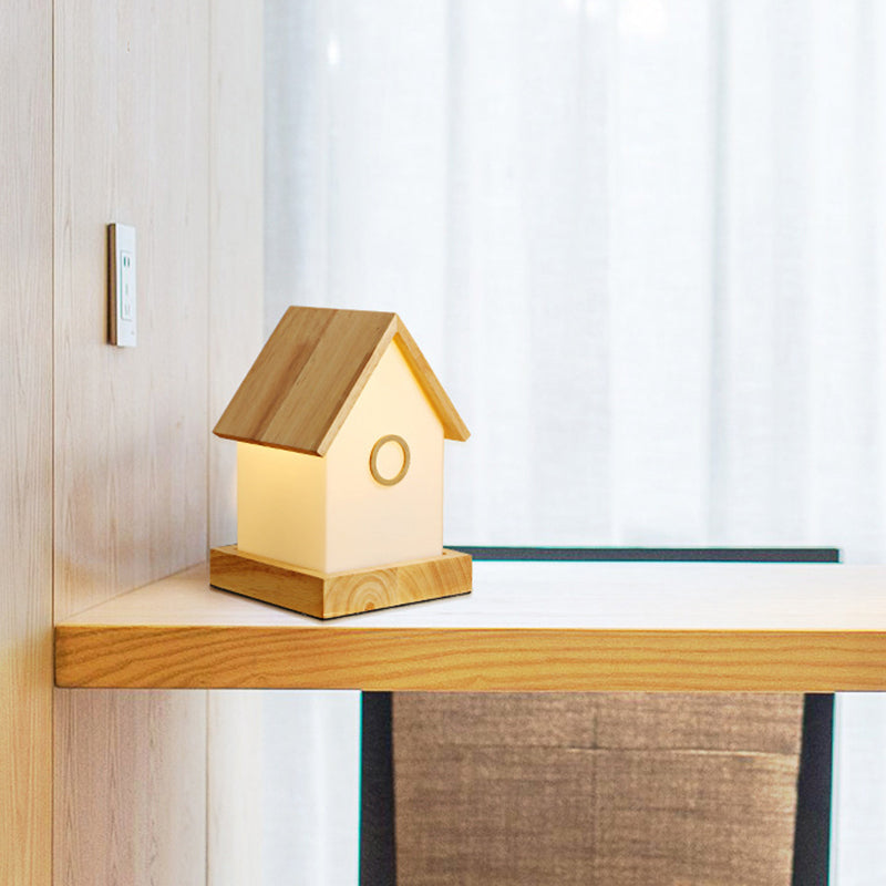 Lampe de table en verre de campagne avec abat-jour opaque - Lampe de chevet en bois à 1 ampoule pour chevet