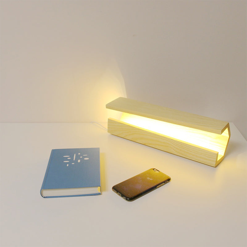 Lampe de table en bois - Design Simplicity, DEL, lumière beige, longueur 5"/6" - Table de chevet de chambre à coucher"