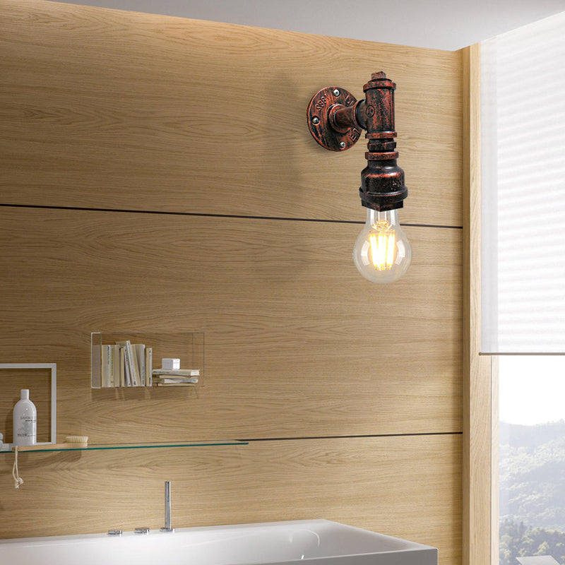 Iron Wall Sconce Lighting - Industrial Black/Aged Silver Indoor Mounted Lamp With Water Pipe 1 Light