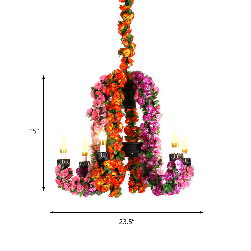 Kit d'éclairage suspendu en métal à 6 têtes : lustre à bras incurvé violet avec décoration florale - Éclairage de restaurant industriel