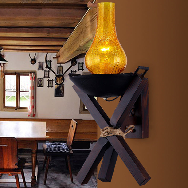 Applique murale rustique en verre craquelé ambre noir avec support mural, 1 lumière