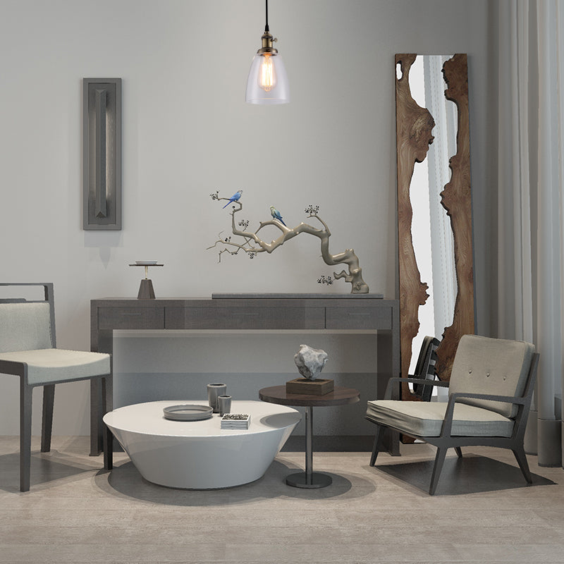 Industrial 1 Bulb Hanging Pendant Lamp With Clear Glass Bell Shade And Bronze/Brass/Copper Top For