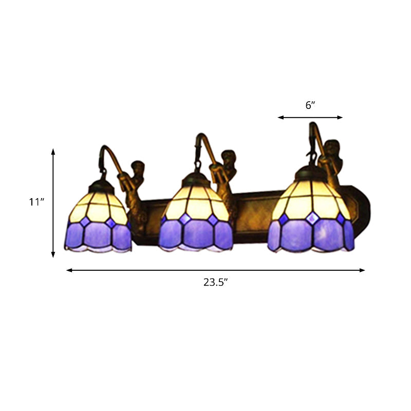 Applique murale à motifs en grille de verre bleu - Luminaire mural Tiffany à 3 têtes en laiton antique