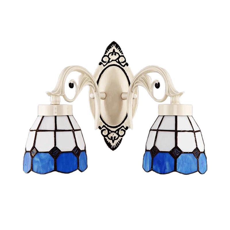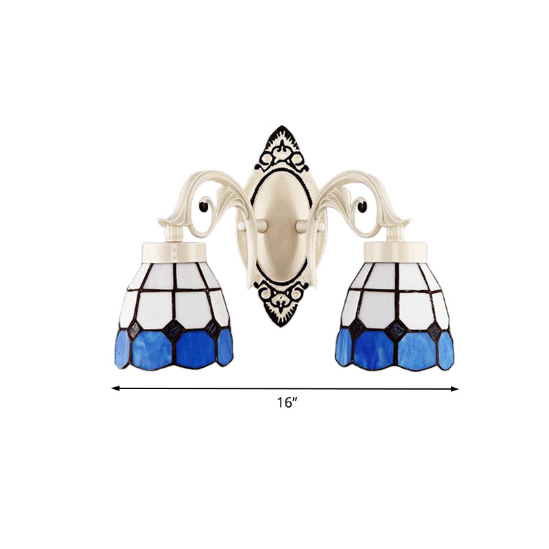 Tiffany Style Stained Glass Wall Sconce Light - Bowl Shade 2 Lights White