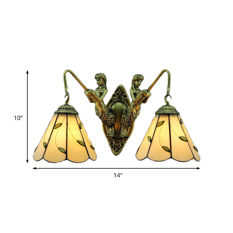 Rustic Stained Glass Sconce Lighting With Leaf Wall Mount - Perfect For Bedroom Beige