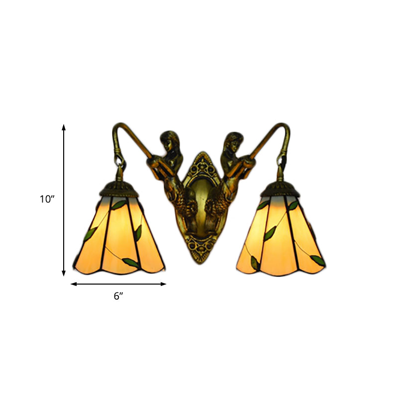 Rustic Stained Glass Sconce Lighting With Leaf Wall Mount - Perfect For Bedroom Light Yellow