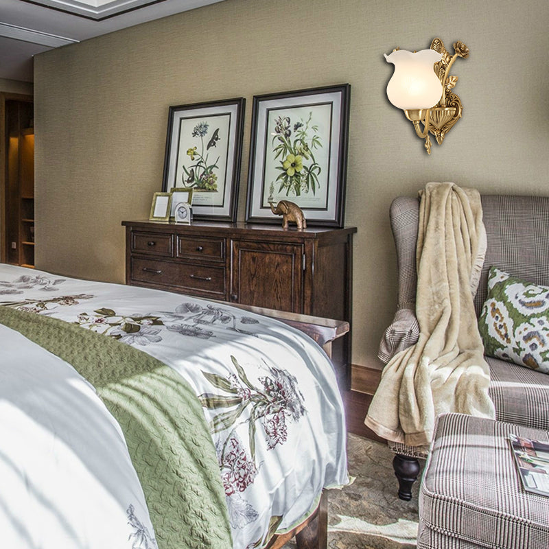 Colonial Brass Sconce Lamp: Opal Glass Shade Perfect For Living Room Lighting