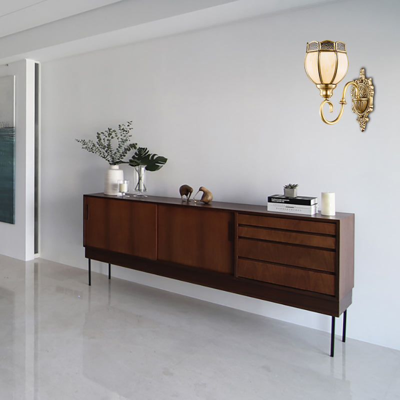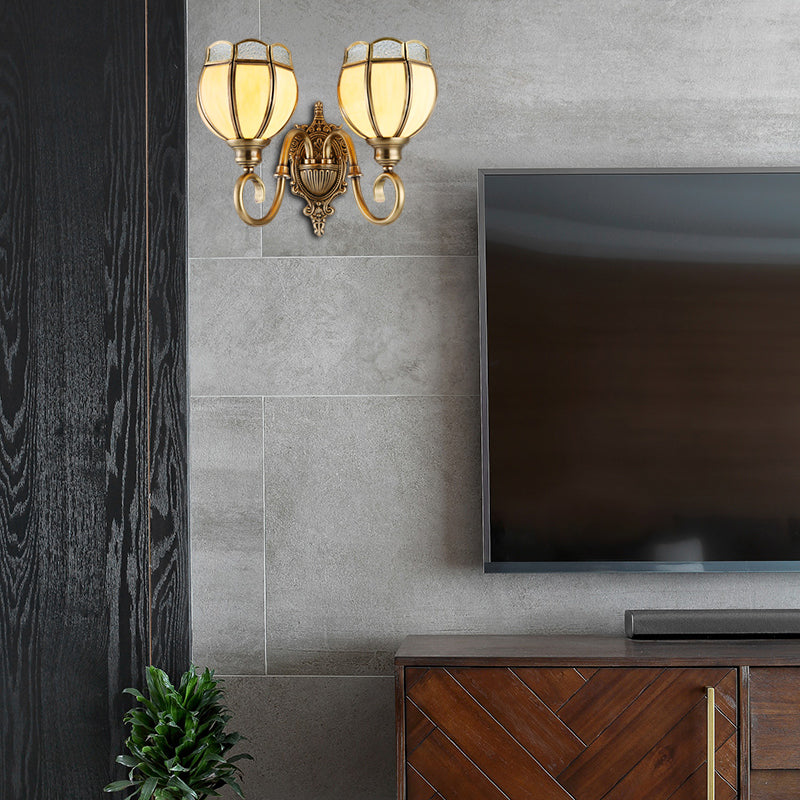 Traditional Brass Metal 1/2-Head Flower Sconce Light Fixture For Bedroom