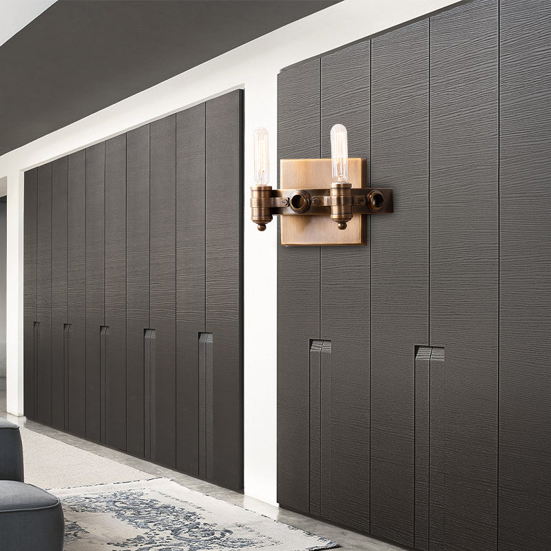 Applique murale vintage en métal bronze avec ampoule nue - 1/2 têtes, plaque arrière rectangulaire