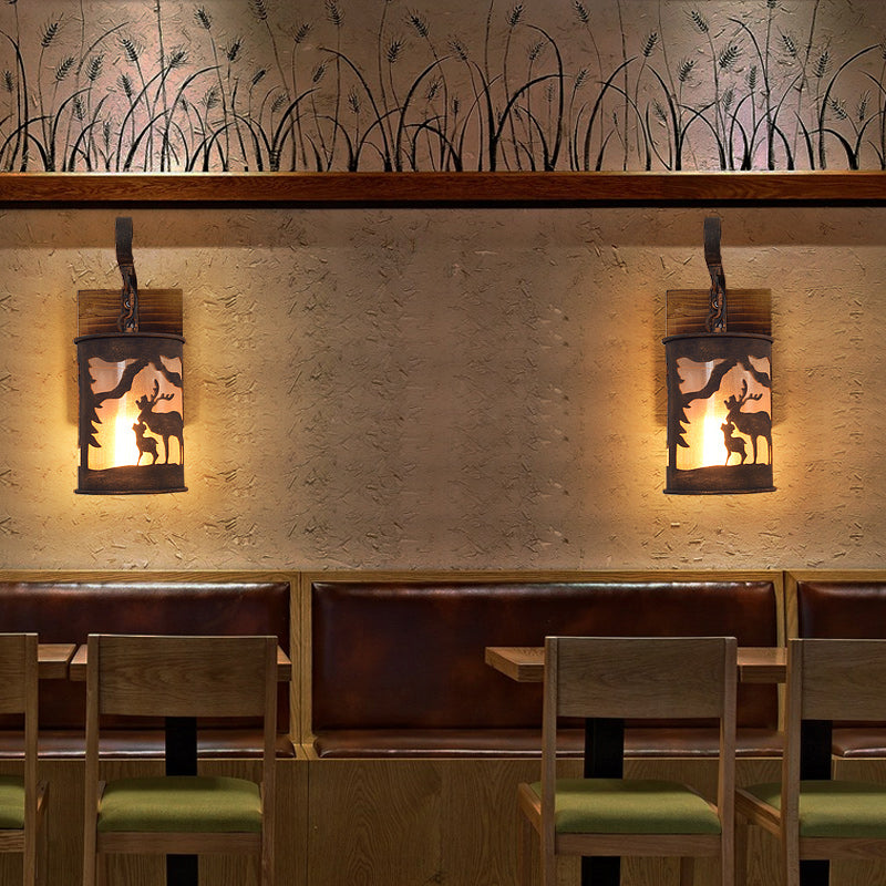 Applique murale rustique avec abat-jour en tissu - luminaire de porche
